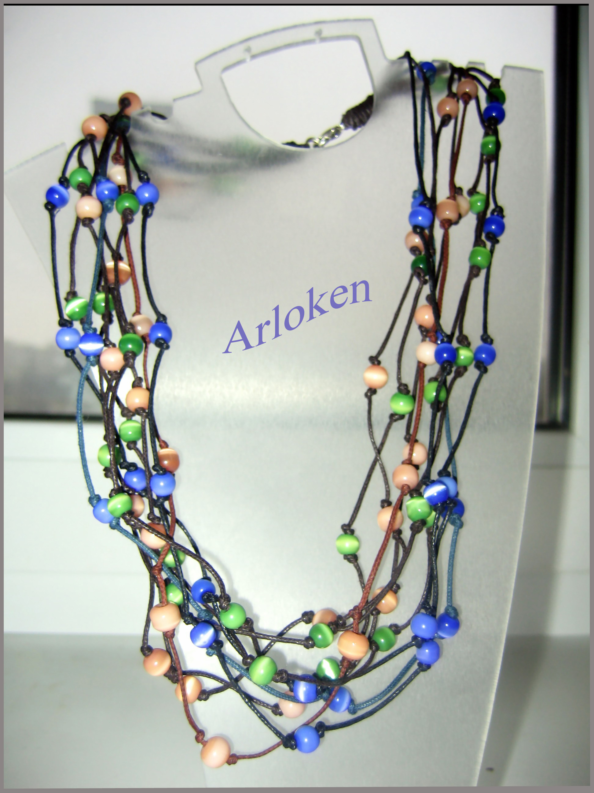 материалы: вощеные шнуры, пластиковые бусины (имитация - кошачий глаз)